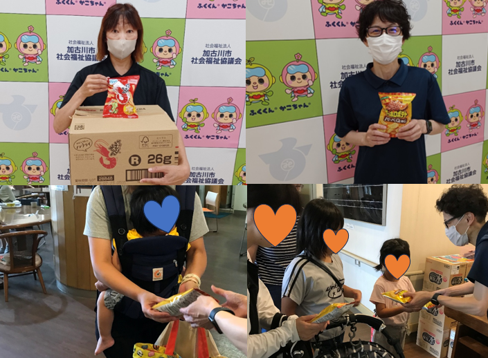 「だし・トマト缶・味噌・パン粉・コショウ・カレールウ・お菓子など」をご提供いただき